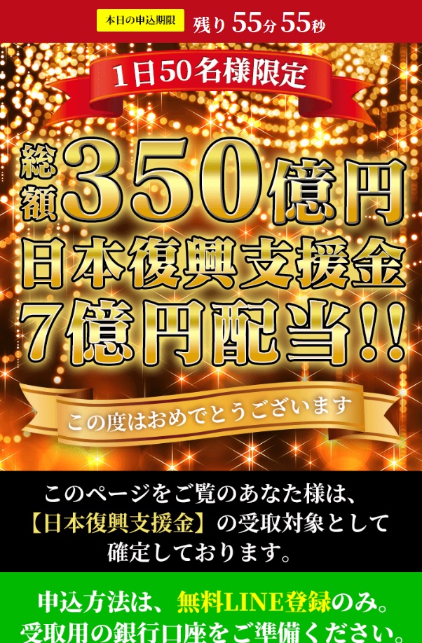 タイトル:1日50名様限定企画 生活支援救済金7億円配当!