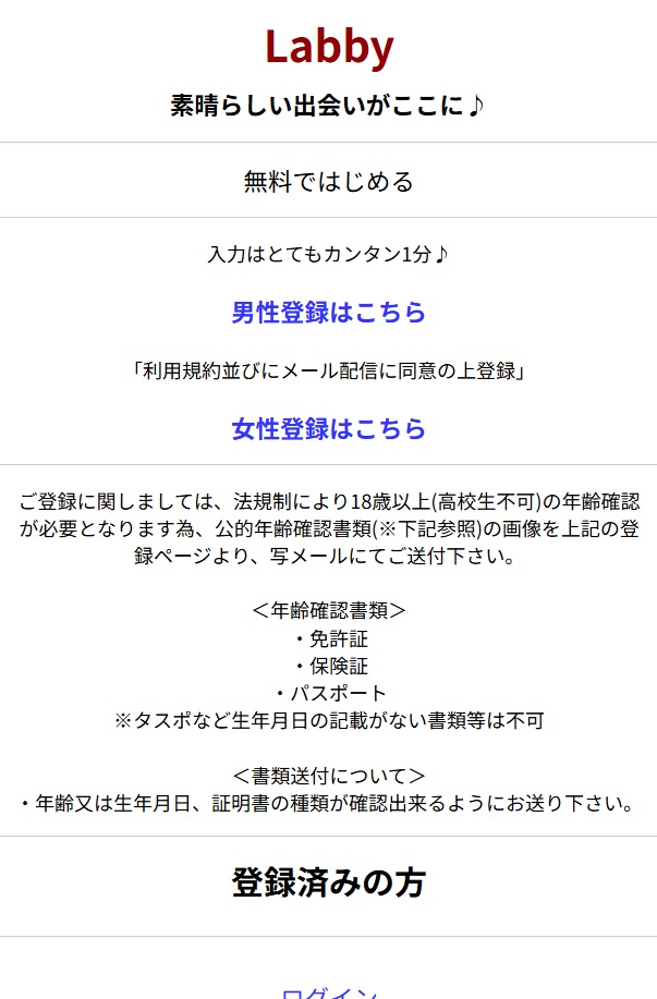 ↑の中で確認できなくなっているケースがあるので、悪質業者が名前を変えているケースが分析できます。このタイプの悪質サイトは、↓のような手口で、Labby(ラビー)へ誘導して騙しているパターンがあるので、騙されないようにご注意ください。