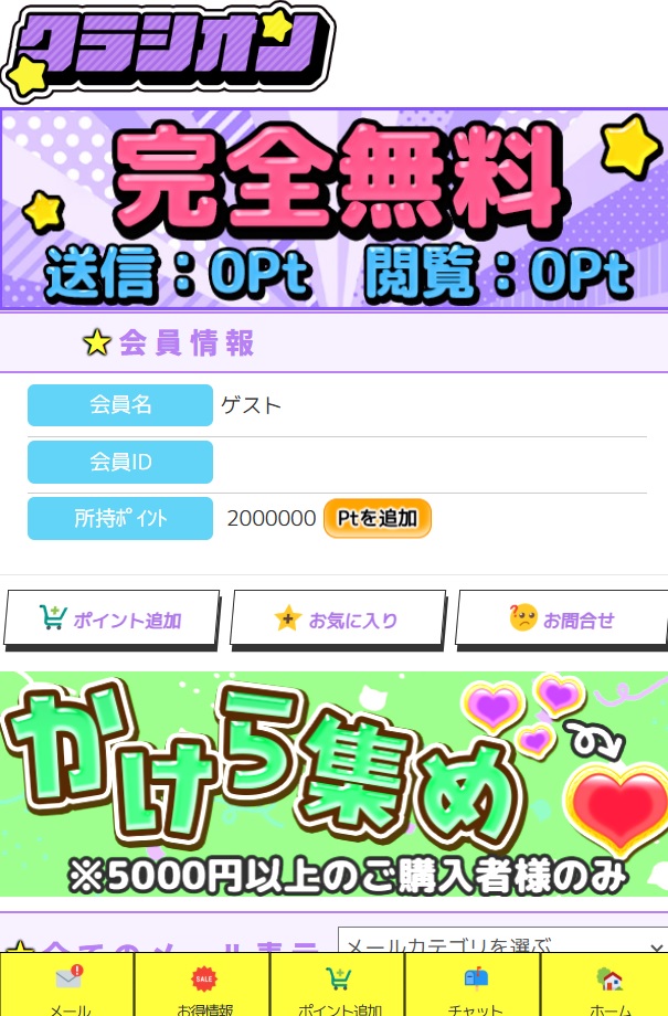 クラシオンの料金は、アモーレ(AMORE)と同じメール送信で300円の設定でした。ポイントを購入すると、ハートのかけらがもらえるケースがあります。料金が高いので、サクラで騙している悪質業者のサイトのケースが分析できます。
