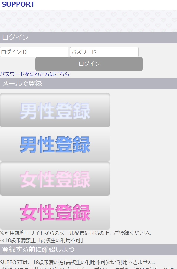 「SUPPORT/サポート/さぽーと」に関する情報を募集しています。サイトに関する口コミ、サクラの情報があれば↓のコメント欄から投稿をお願いします。