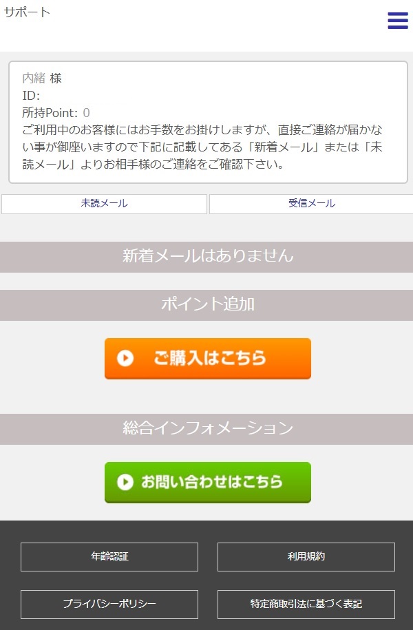 SUPPORT(サポート)の料金は、center(センター)などと同じ設定になっています。サクラで騙している悪質サイトは、料金が高くなっているケースがあります。