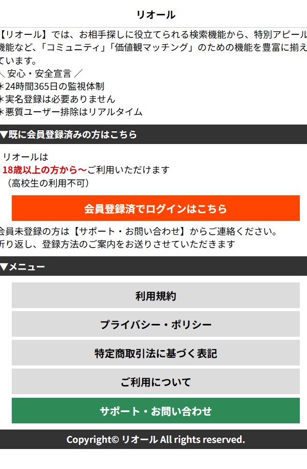 リオールには、会社情報が何も書いてありませんでした。運営情報が確認できないような出会い系サイトは、利用してはいけない悪質サイトのケースが分析できます。