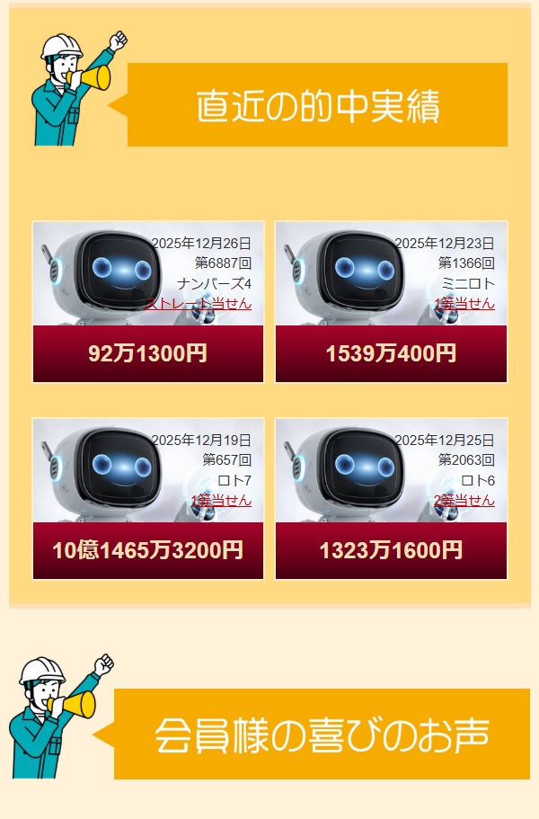 当せんファクトリーのサイト内には、「直近の的中実績」が書いてありましたが、これもフィクションの一部の可能性があります。