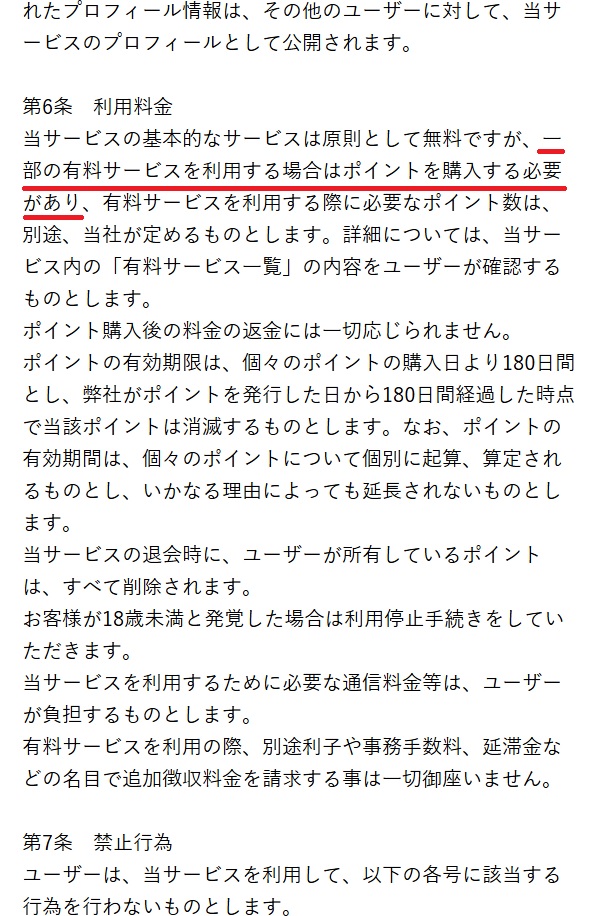 ZEROCLUB(ゼロクラブ)の利用規約を確認すると、「一部の有料サービスを利用する場合はポイントを購入する必要があり」と書いてあるケースが確認できます。