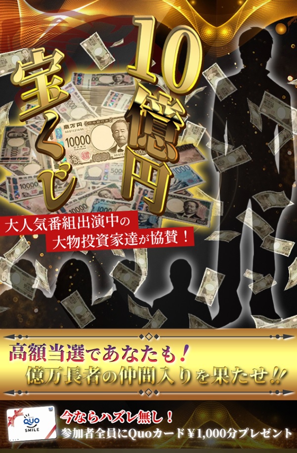 タイトル:大人気番組出演中の有名投資家達協賛!10億円宝くじ