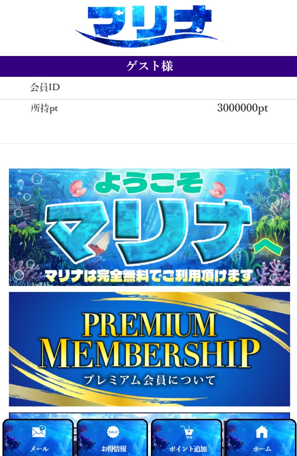 マリナには、プレミアム会員(PREMIUM MEMBERSHIP)が用意されていました。このような悪質サイトでは、ポイントを現金に交換できると言って騙しているケースがあるので、似た手口に注意をしてください。