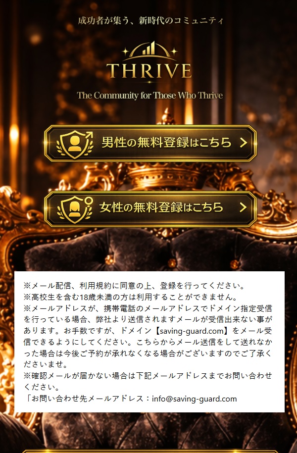 「THRIVE/スライブ/すらいぶ」に関する情報を募集しています。サイトに関する口コミ、サクラの情報があれば↓のコメント欄から投稿をお願いします。
