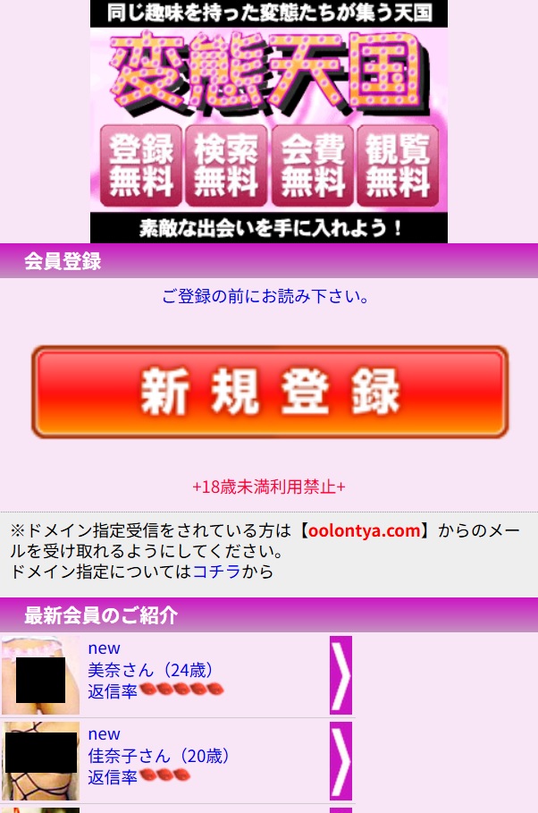 ↑のサイトは、登録した会員は、提携有料サイト(アイマッチゲット、ハッピーマッチ、charm、ウィズ、プラス)からのメールを承諾するものとしますと書いてありました。変態天国に登録すると有料のポイントサイトに登録されるので、ご注意ください。